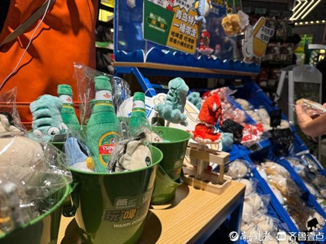 红山动物园可爱IP小熊猫、水獭、卡皮巴拉;被称为符合年轻人精神状态的“蛏子”“海蛎子”等海鲜类玩偶,结合青岛特色的“哈酒鸭”毛绒玩具在青岛啤酒博物馆热卖。赶海小桶+青岛啤酒毛绒玩具+海蛎子/鲅鱼/笔管鱼/蛏子化身青岛特产组合,将“哈啤酒、吃嘎拉、洗海澡”的青岛特色带到室内,带到市民游客身边。